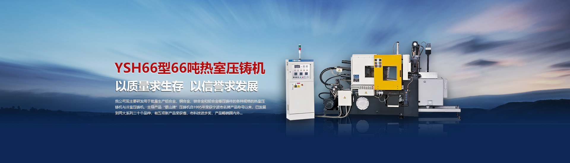 我司現主要研發(fā)用于批量加工生產鋁合金、銅合金、鋅合金和鉛合金等壓鑄件的各種型號規(guī)格的熱室/冷室壓鑄機,主導產品“銀山牌”壓鑄機自1995年榮獲寧波市名牌產品稱號以來,已發(fā)展到兩大系列二十個品種,有五項產品曾榮獲省、市科技進步獎,產品暢銷國內外。歷年來向用戶提供了8000余臺設備,為中國的壓鑄工業(yè)發(fā)展作出了重要的貢獻,企業(yè)獲得了很高的信譽度。